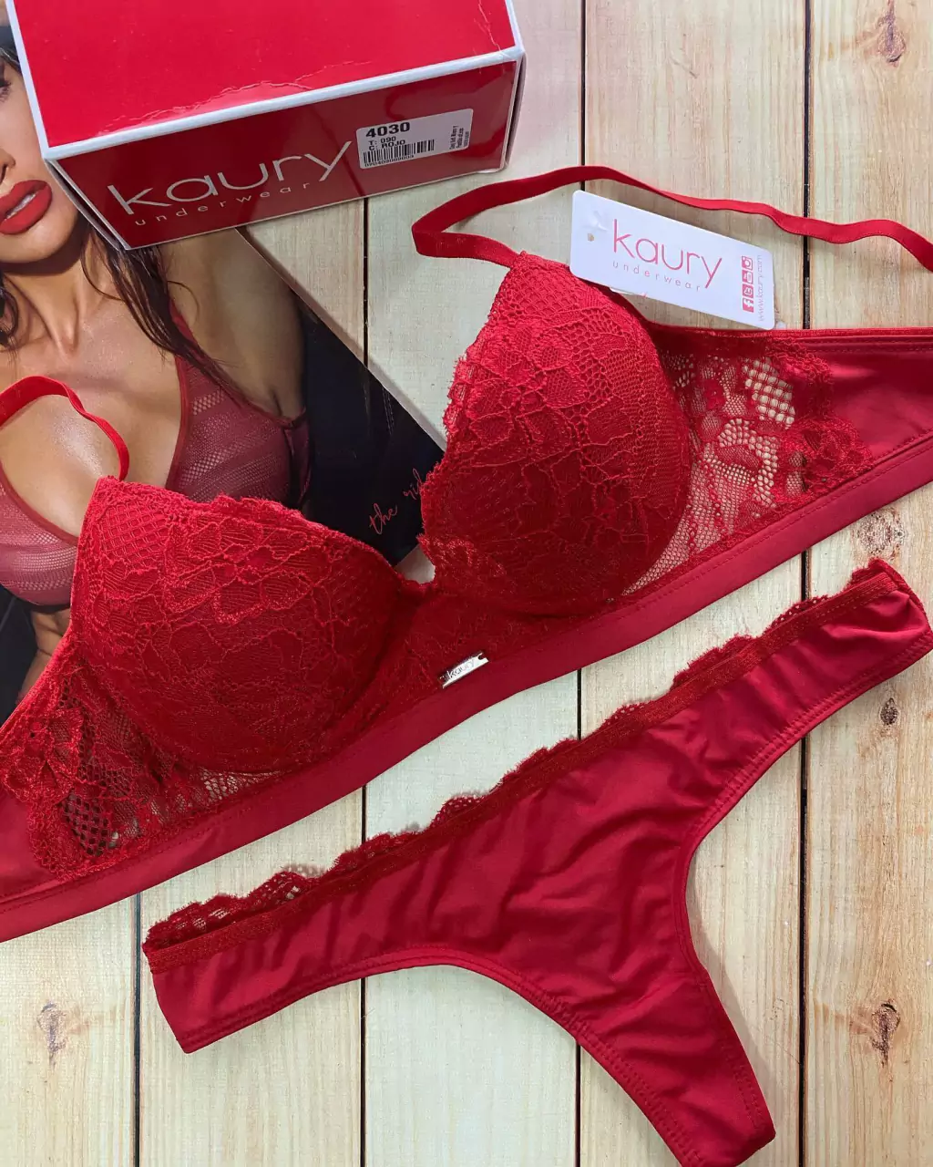 CONJUNTO TAZA SOFT PUSH UP ENCAJE ROJO